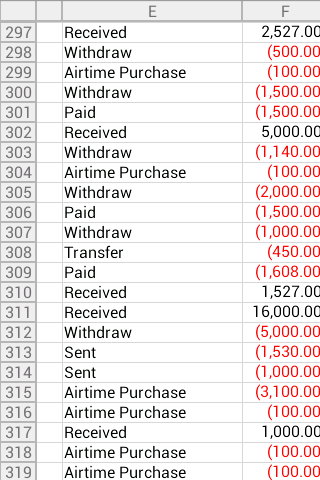 Convert your M-Pesa transactions into Excel spreadsheets effortlessly for analysis and sharing. Work with the excel file on a desktop computer or on the device and enjoy the power of using a Spreadsheet based file to analyze your SMS transactions