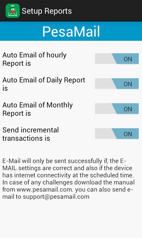 Get automatic M-Pesa statement delivered to your email inbox hourly, daily and monthly
